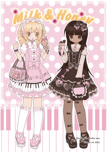 Milk & Honey is an annual lolita fashion zine made by and for the New Zealand Lolita Community. These zines were originally published in a limited physical run for members of the community, followed by a digital release. It is free to download and can be downloaded below at the following links. For information on future volumes please follow our public Instagram.